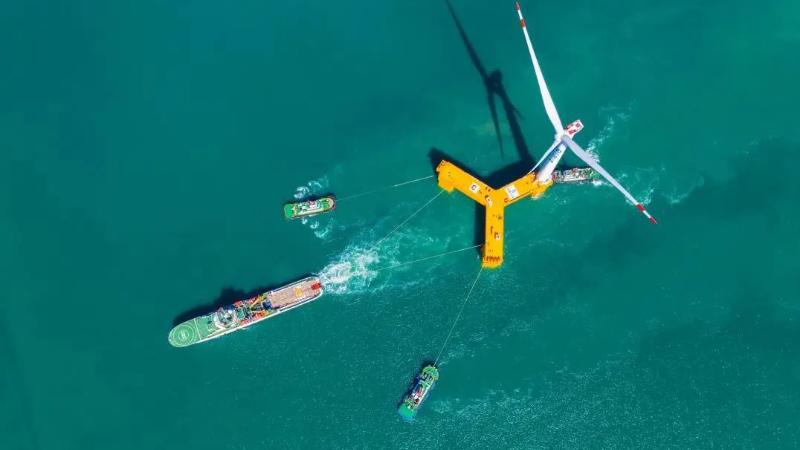 近日,從廣東茂名港出發(fā)的中國首臺浮式風(fēng)電機組于7月11日成功抵達陽江海上風(fēng)電場并開始進行系泊索安裝。