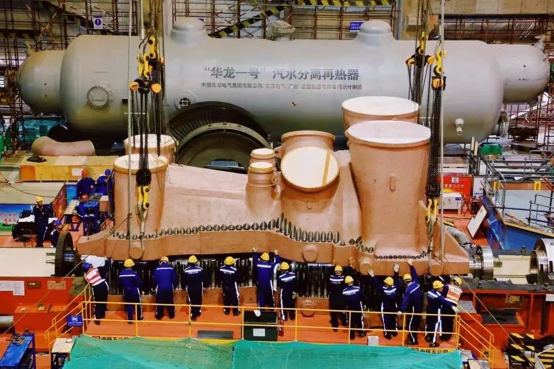 2017年11月28日,首臺蒸汽發(fā)生器吊裝就位。