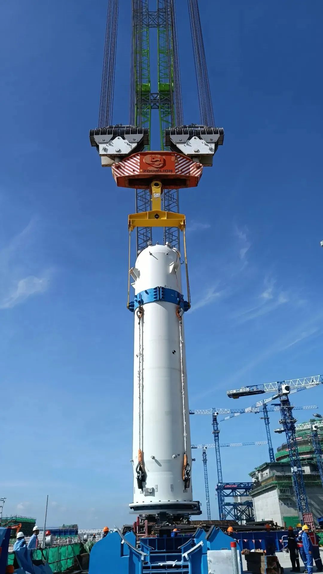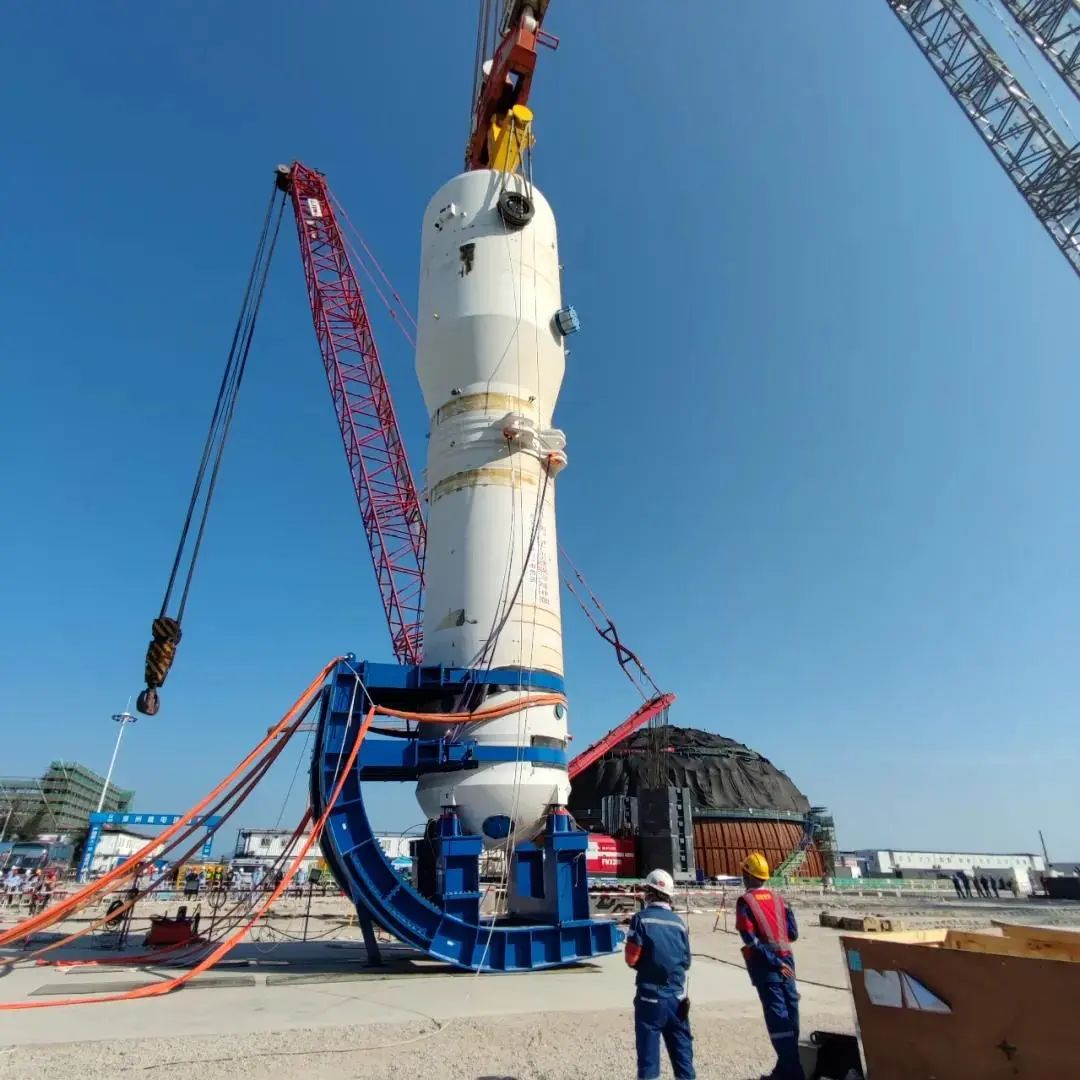 2021年10月,漳州核電1號機(jī)組反應(yīng)堆壓力容器吊裝成功,吊裝過程翻轉(zhuǎn)、吊裝、就位難度極大,巨力索具項(xiàng)目團(tuán)隊(duì)聯(lián)合各部門共同確定最終吊裝方案,順利完成吊裝,吊裝過程中所用的吊具均由巨力索具提供。