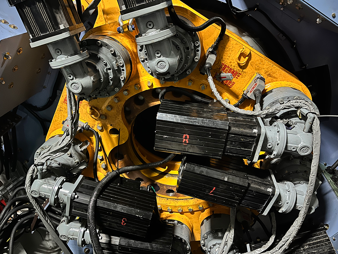 單葉片吊裝配套的盤車工裝采用創造性的8個電機驅動,優秀的控制程序,均衡了驅動的受力。機載控制面板和手持平板電腦均可查看和控制盤車使用過程。剎車裝置采用電機抱閘剎車和機械剎車雙重保障。