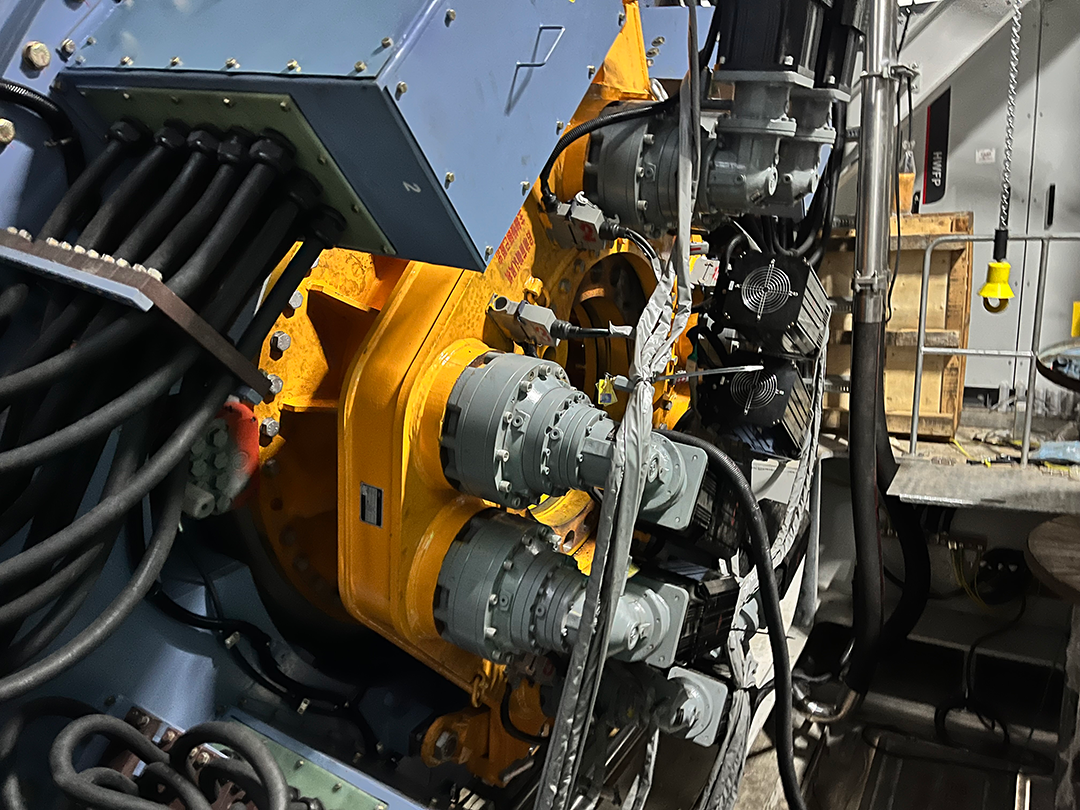 盤車工裝組裝簡單,發貨前,盤車主體已經組裝完畢,僅需將控制柜和電機電源線按標號連接,即可投入使用,盤車在連接固定好反力臂和剎車盤接口,即可操作盤車。本套盤車工裝操作簡單快捷,可在40分鐘內對風輪進行120°盤車,加快風場作業速度,大大縮短業主安裝風機時間,有效降低客戶安裝成本。