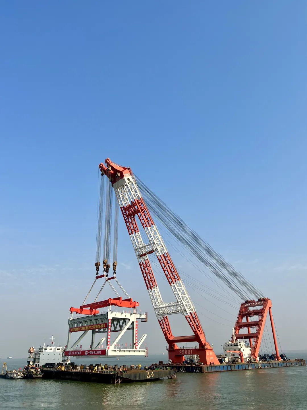 2023年2月,大橋主航道橋首個1280噸的鋼梁需在高空與兩側梁段實現毫米級對接,巨力索具1900噸大節段鋼梁吊具全程保障該項目吊裝順利進行。