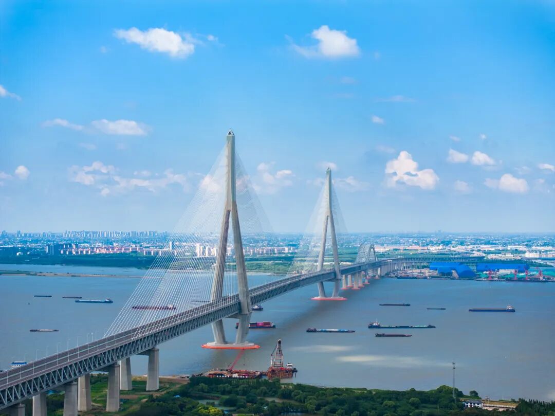 常泰長江大橋主航道橋是主跨1208米的斜拉橋,創下了最大跨度斜拉橋的世界紀錄。作為公鐵合建雙層復合型過江通道,常泰長江大橋上下層鋼橋面鋪裝總面積超25萬平方米,相當于33個標準足球場。大橋建設過程中,實現六項世界之最、四項世界首創: