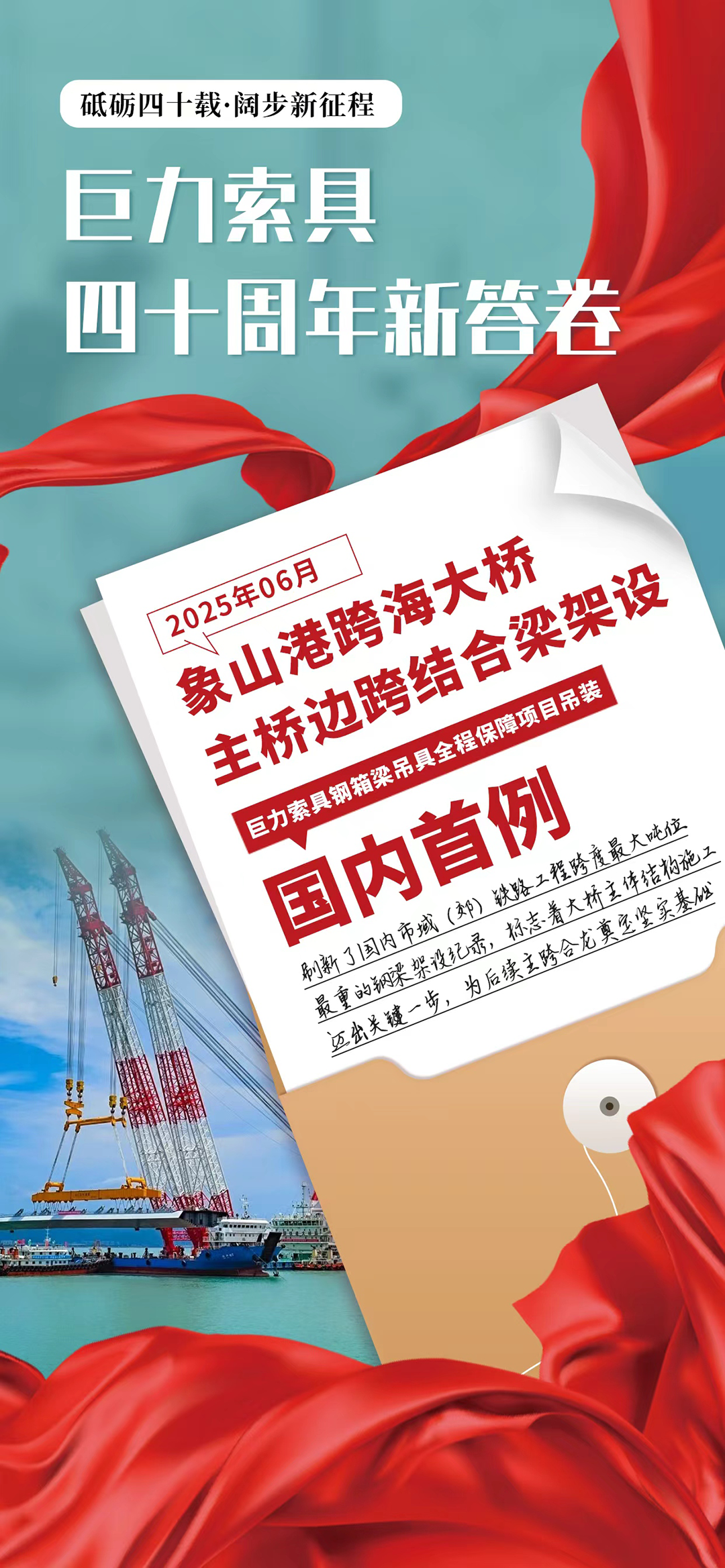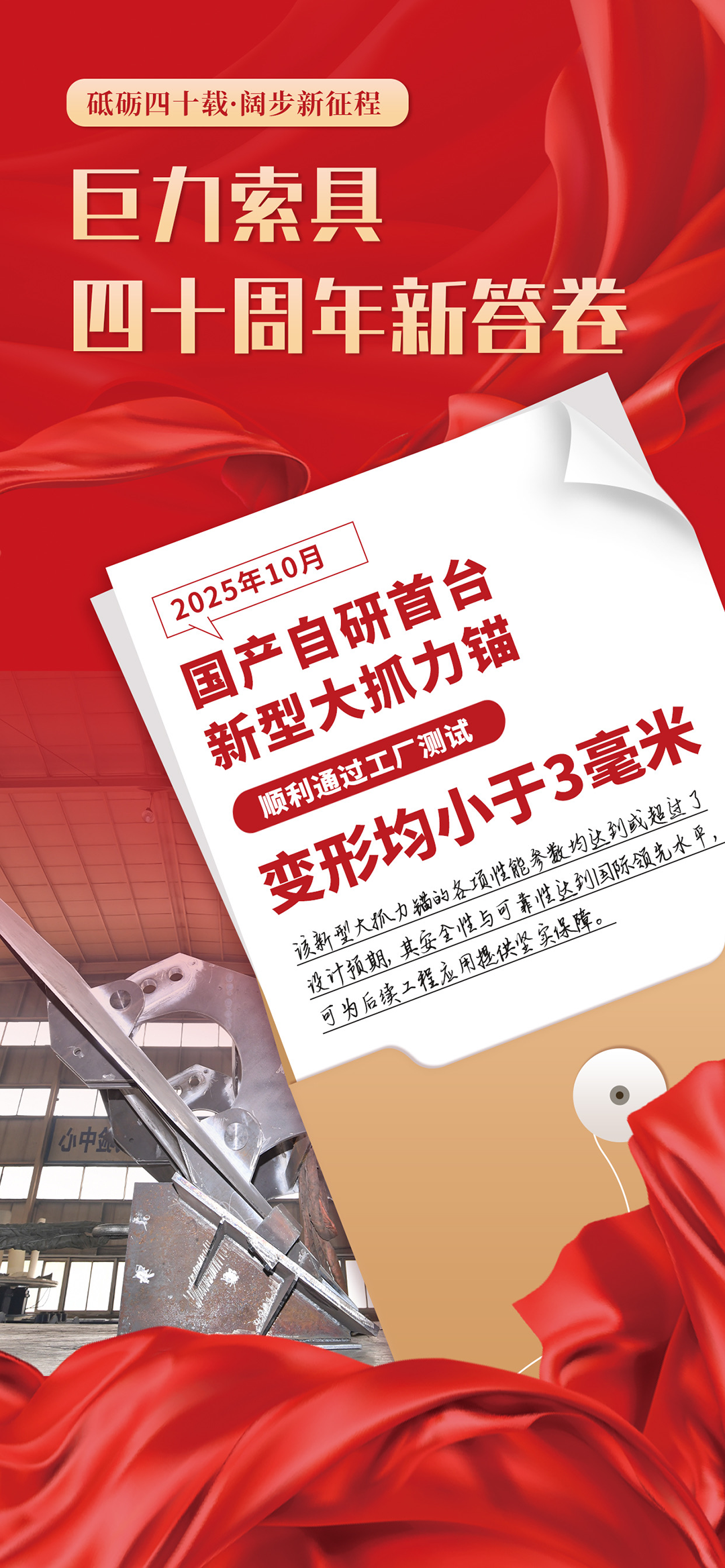 2025年11月8日,巨力索具迎來成立四十周年紀(jì)念日。四十年,對于巨力索具而言,是一段從無到有、由弱到強的崢嶸歲月,是一曲用汗水、智慧與堅韌譜寫的奮斗史詩。