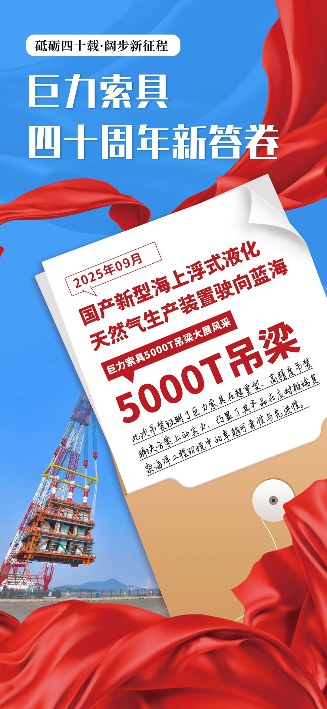 回眸歷史,非凡成就與貢獻有目共睹,精神力量薪火相傳;展望未來,新時代浩蕩東風(fēng)催人奮進,穩(wěn)定發(fā)展重任在肩。巨力索具將始終堅持改革創(chuàng)新,跟隨集團黨委步伐,不斷增強開拓創(chuàng)新和主動求變的能力,堅定信念凝聚力量,牢牢掌握發(fā)展主動權(quán),以更加奮發(fā)有為的昂揚姿態(tài)在高質(zhì)量發(fā)展之路上勇毅前進。