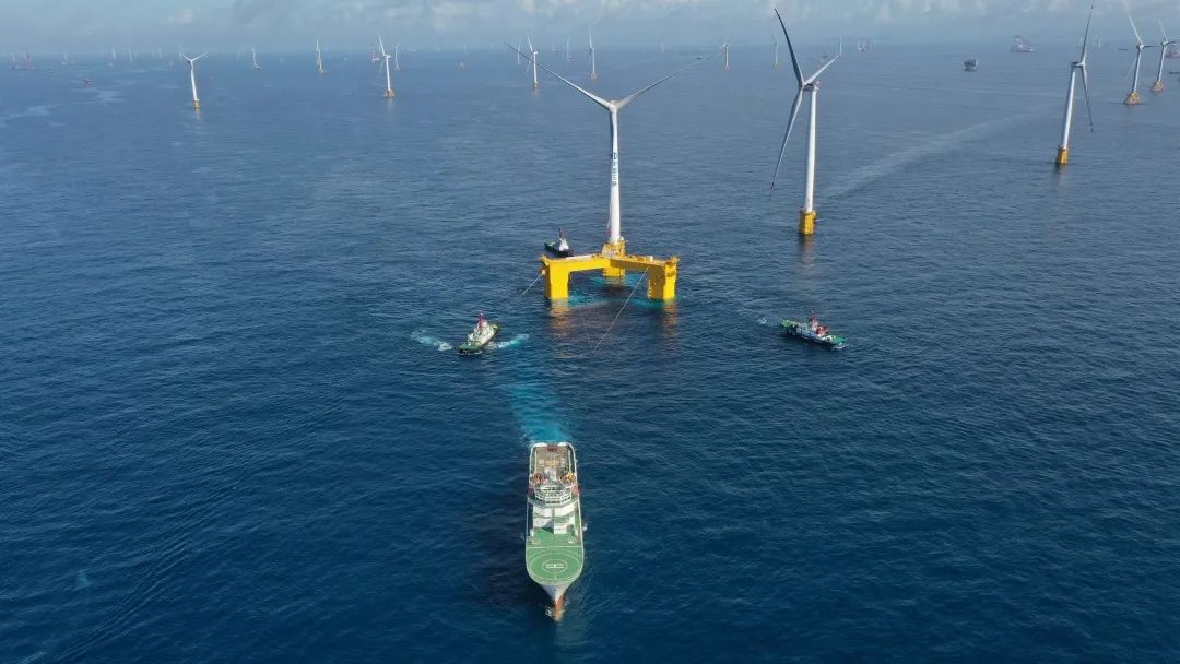 6月7日,海上漂浮式風機永久系泊索在廣東陽江項目場完成水下鋪設,為后續(xù)海上風機浮式基礎平臺到達安裝打下堅實基礎。