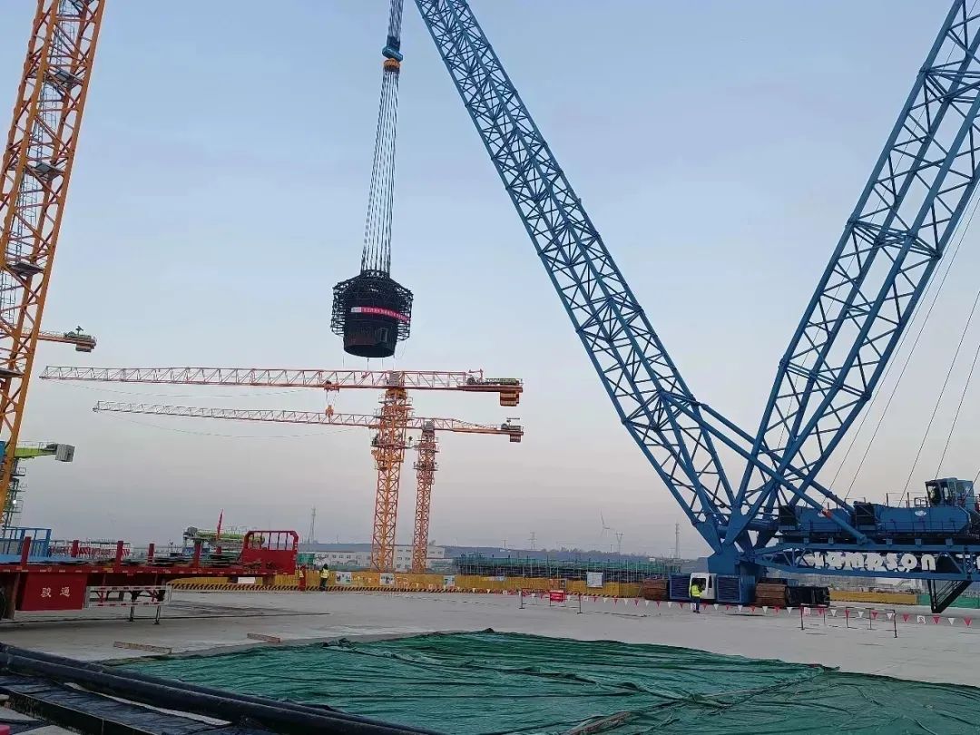 2021年11月18日5時36分,初冬凌晨的徐大堡項目現場已燈火通明,伴隨著吊裝總指揮“開始吊裝”一聲令下,2600T履帶吊干凈利落的完成了起鉤、變幅等一系列動作,于2021年11月18日8時36分順利完成了核島堆芯豎井的吊裝工作,歷時3個小時,巨力索具為整個吊裝過程提供配套索具,這是徐大堡核電3號機組自開工以來,首次大件吊裝,為徐大堡核電3號機組反應堆廠房主體工程及關鍵路徑施工打下了堅實基礎。