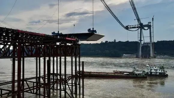 江津白沙長江大橋首節鋼箱梁吊裝成功,今年有望建成通車