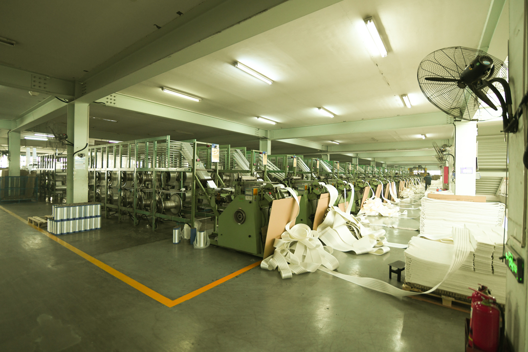 巨力索具股份有限公司吊裝帶制造總廠,擁有世界先進(jìn)的生產(chǎn)設(shè)備千余臺(tái)套,包括瑞士繆勒織帶機(jī),德國染整機(jī)、日本全自動(dòng)縫紉機(jī)、全自動(dòng)下料機(jī)、西班牙的合股捻芯機(jī)等。擁有最完善的檢測試驗(yàn)設(shè)備,年產(chǎn)量達(dá)2 萬噸以上,是目前生產(chǎn)規(guī)模最大,品種齊全的軟索具生產(chǎn)基地。