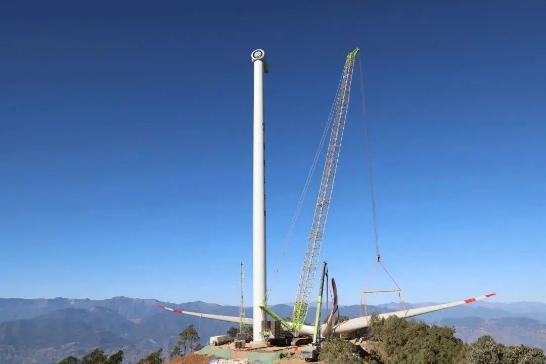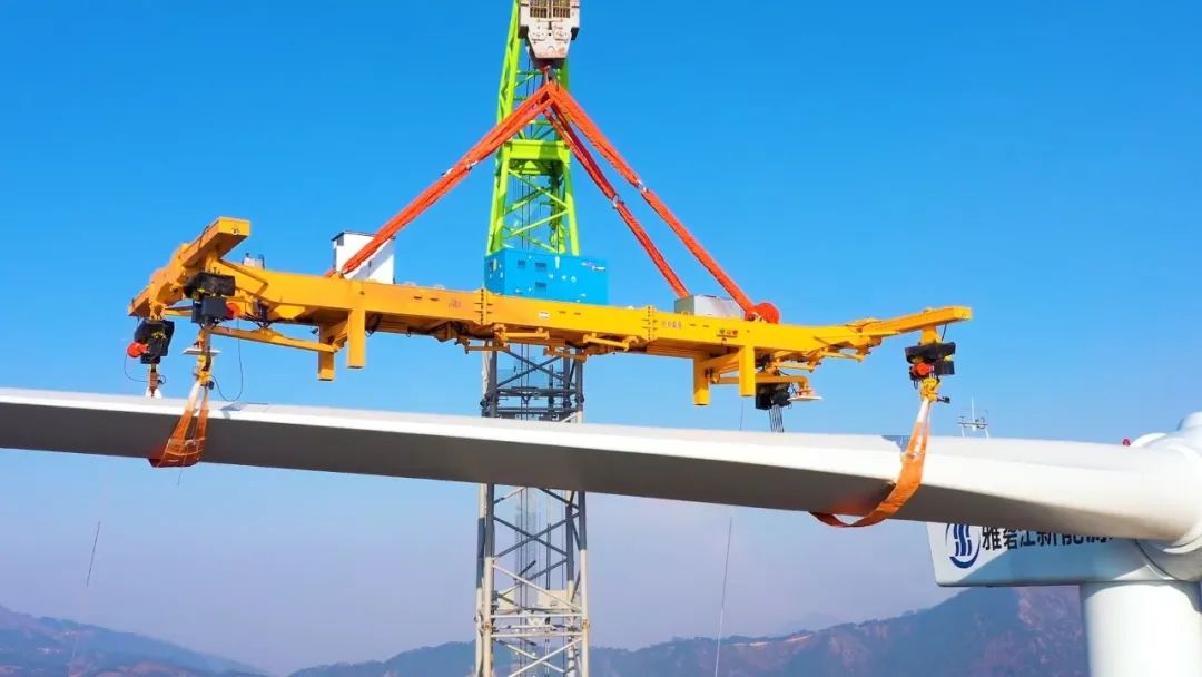 首戰告捷!雅礱江水電臘巴山風電項目風機單葉片吊裝