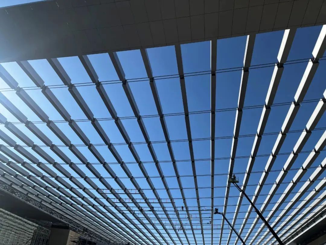 中法航空大學(xué)規(guī)劃之初就設(shè)計(jì)有這張半空中的巨大屋面,充分呈現(xiàn)航空領(lǐng)域的科技質(zhì)感,且順應(yīng)周圍山勢,兩側(cè)上挑中間自然凹弧,整個(gè)懸浮式大屋面造型如機(jī)翼一般輕盈,是目前亞洲最大跨度的不銹鋼密閉索-鋼桁架超長屋面,巨力索具負(fù)責(zé)該項(xiàng)目不銹鋼密閉索的供貨工作。